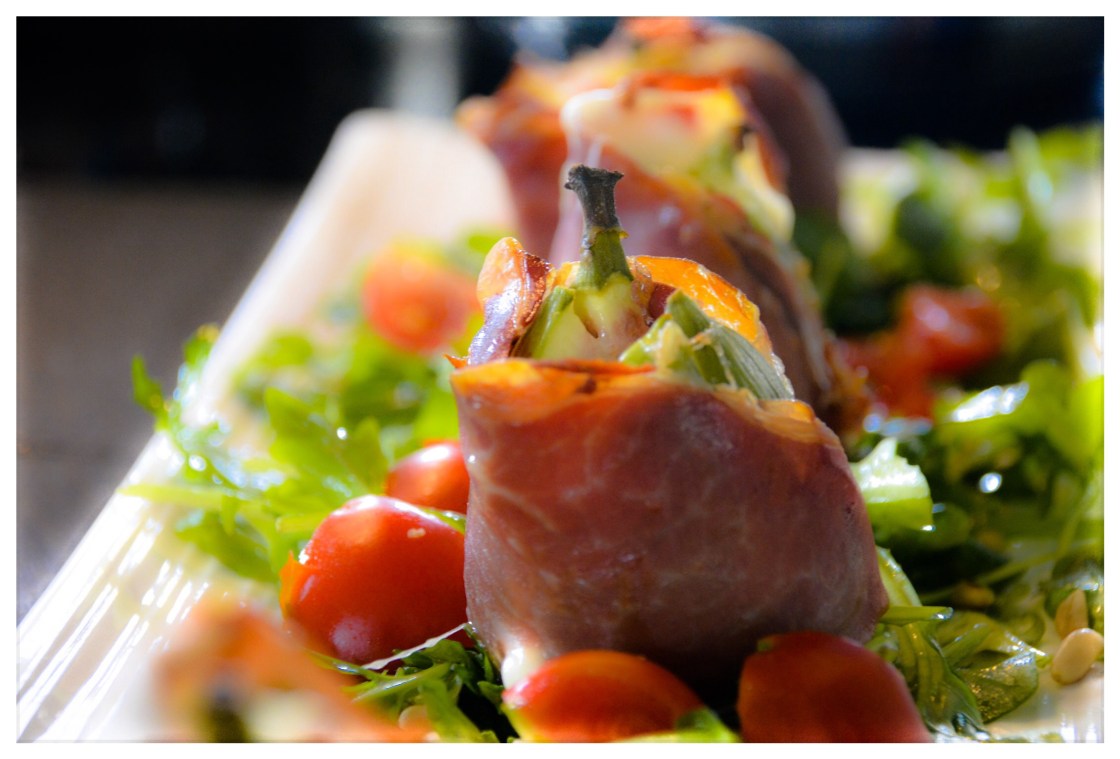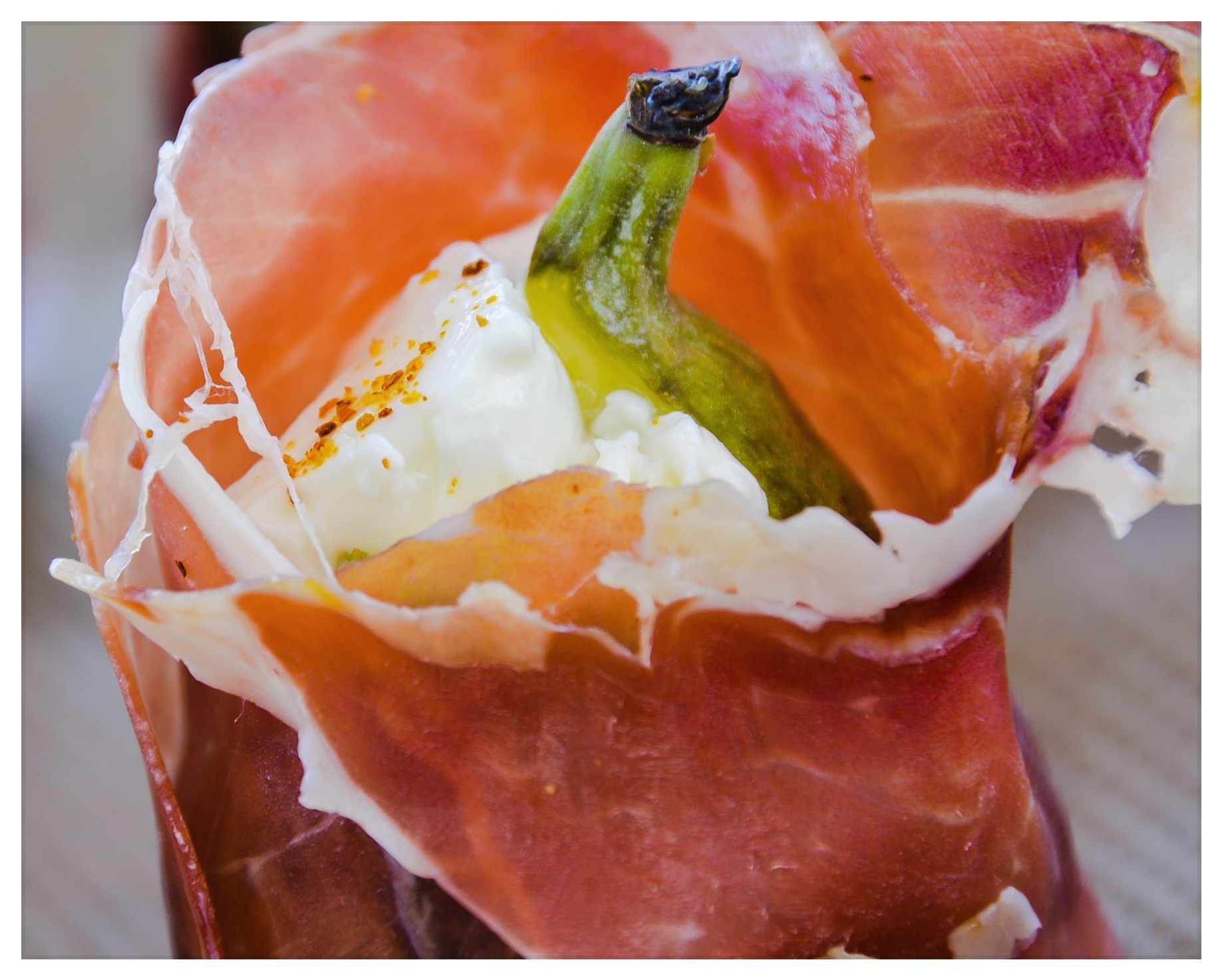 Die Feigen kurz waschen, gut trocknen, und vom Stiel her über Kreuz einschneiden, etwas auseinander drücken, dann einen tropfen Honig hinein fliessen lassen. Jetzt die Feigen mit dem hauchdünn geschnittenem italienischem Schinken umhüllen. Als Krönung des Ganzen, die mini Kugel Mozzarella oben drauf setzen. Mit piment D’Espelette bestreuen, und bei 180 Grad für 10-15 Minuten in den vorgeheizten Ofen schieben.