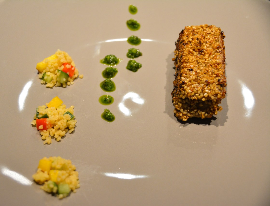 Thunfisch in Sesammantel auf Couscoussalat mit Mandel-Petersilie Pesto