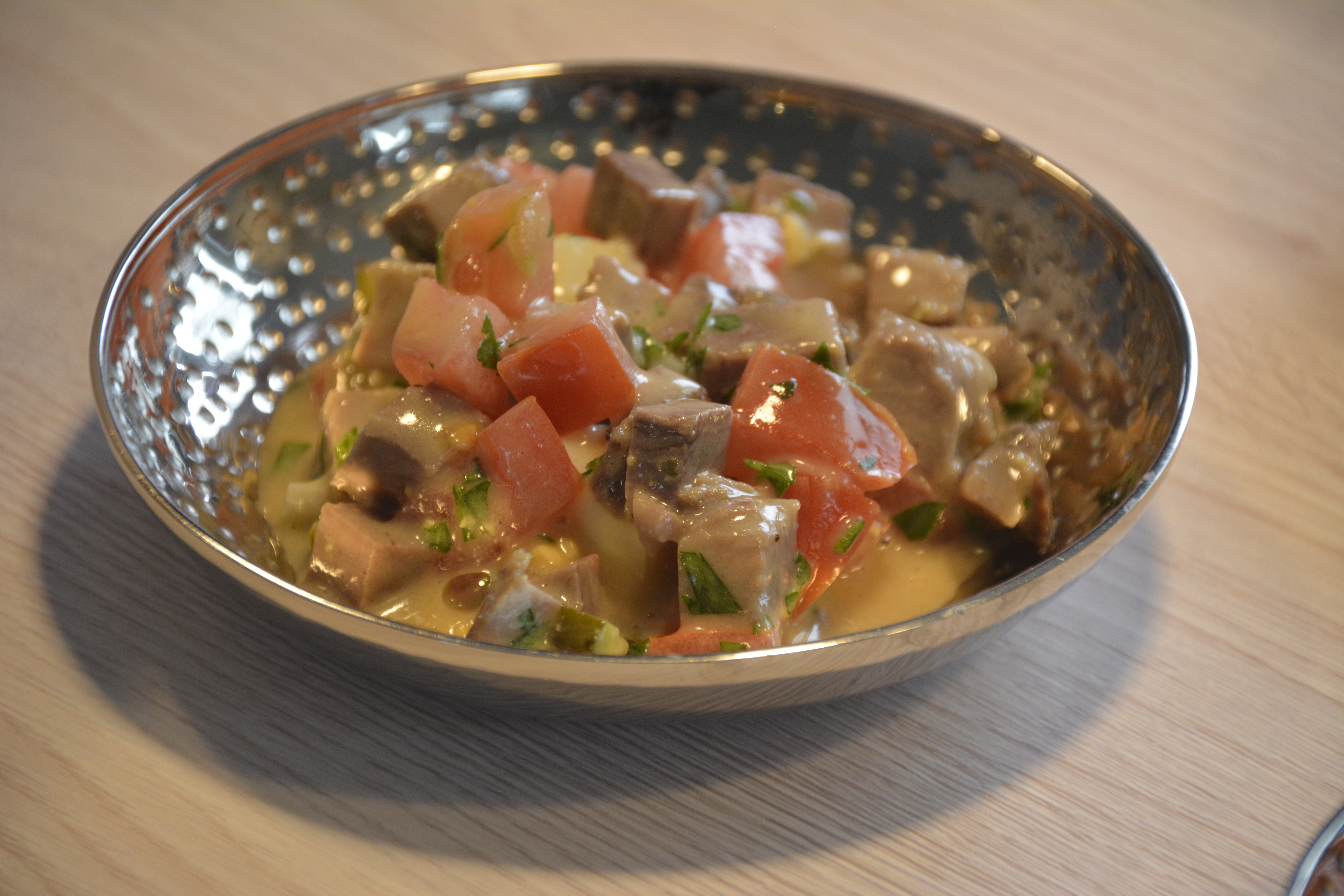 Das Fleisch in kleine Würfel schneiden. Die Tomaten ebenfalls würfeln.Die Eier werden hart gekocht, abgeschreckt, geschält und kleingeschnitten. Die cornichons werden in Scheiben geschnitten.