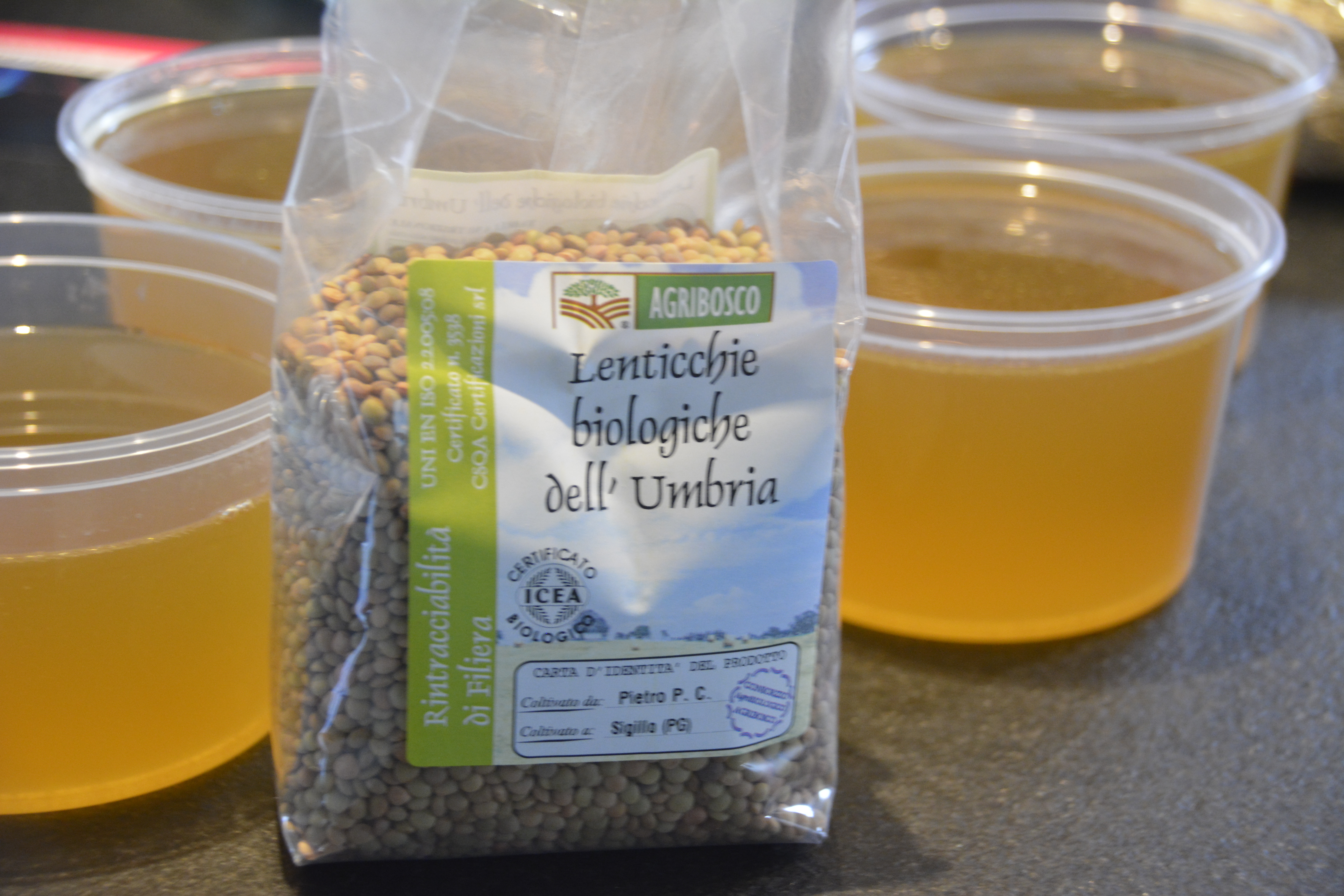 Da für mich ja jetzt der Herbst auch Einzug in meiner Küche gehalten hat, und ich mich auf die vielen Schmorgerichte, Suppen und Risotto’s freue, habe ich doch mal Inventar in meiner Tiefkühltruhe gehalten, und dabei festgestellt, dass ich nur noch 1 liter Hühnerbrühe auf Vorrat habe. Das geht ja gar nicht, dieser Bestand muss sofort aufgestockt werden. Ich weiss ja nicht wie ihr das macht, aber für mich steht fest, es geht nichts über eine hausgemachte Brühe, ob die jetzt vom Huhn , vom Rind oder vom Fisch ist, oder ob es sich um eine Gemüsebrühe handelt, das Gericht was damit gekocht wird schmeckt mir zumindest einfach viel besser, und ich weiss, was in meiner Brühe drin ist!Darum habe ich sofort am Samstag damit angefangen. Da ich ja vor hatte diese Linsensuppe zu kochen, habe ich also als Erstes eine Rinderbrühe aufgesetzt.