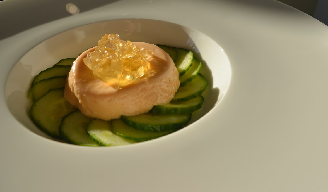 Wenn ich die Mousse als amuse bouche verwende, fülle ich sie in kleine Gläser. Wenn ich sie als Entrée serviere nehme ich eine längliche Tefalschüssel gebe die Masse hinein, und kann sie dann wenn sie fest ist in schöne Stücke schneiden, oder fülle sie sie in kleine Förmchen und stürze sie dann auf den Teller mit etwas Rucola Salat und Kirschtomaten, oder etwas Gurkensalat, auf einem Teller servieren, dazu eine Scheibe warmes Toastbrot oder Baguette.