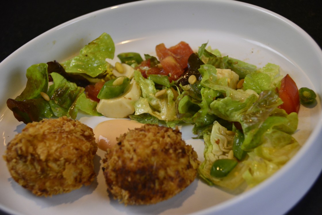Die kleinen weissen Cannellinibohnen, der geröstete Blumenkohl, mit diesem schönen nussigen Geschmack, gepaart mit den winzig kleinen Nordseekrabben….umhüllt von einer knusprigen Panade aus Pankomehl, dazu einen leckeren knackigen grünen Salat; das ist mein Rezept, was ich euch heute vorstellen werde. Meine eigene Kreation, und mir hats richtig gut geschmeckt.