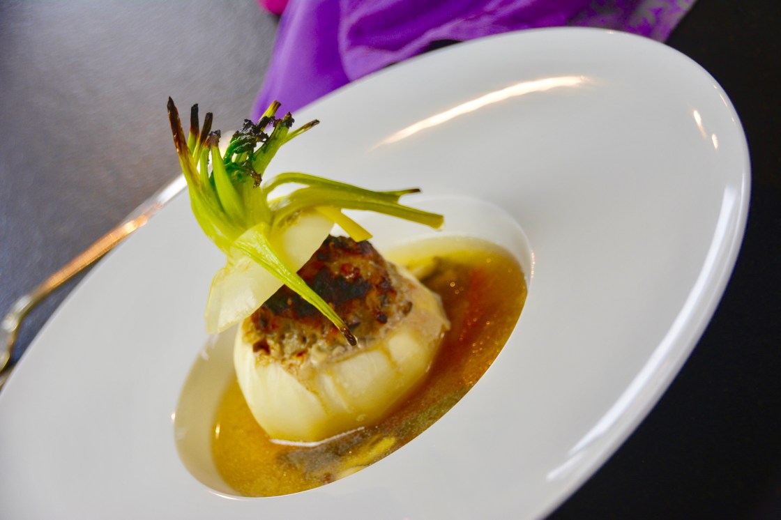 Den Backofen auf 220 Grad Warmluft aufheizen. Die Brühe von ihren Gewürzen befreien, in eine ofenfeste Schüssel geben, die gefüllten Rübchen ohne Deckel hinein setzen , die Deckel nach 15 Minuten mit in die Brühe setzten. Dadurch wird das Fleisch „on top“ knuspriger.Die Einlage ( Karotte, Shitakepilze, Frühlingszwiebel) in die Brühe geben. Das ganze für 35 Minuten im Ofen knusprig braten.