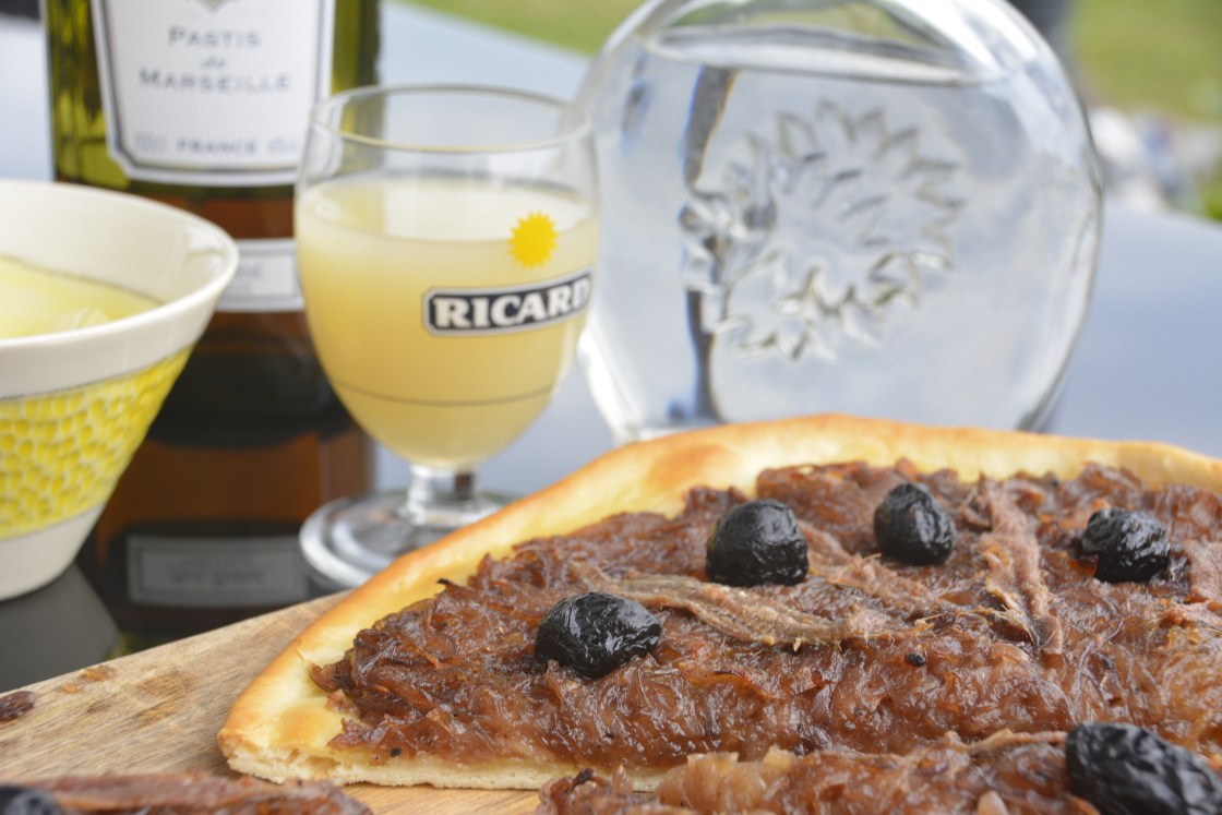 Den Teig ausrollen, auf ein Backblech oder in eine Tortenform geben, die Zwiebeln gleichmässig darauf verteilen. Mit den Anchovis Filets und den schwarzen Oliven dekorieren und fertig ist die Pissaladière. Für 15-20 Minuten in den heissen Backofen stellen. (Umluft 210 Grad)