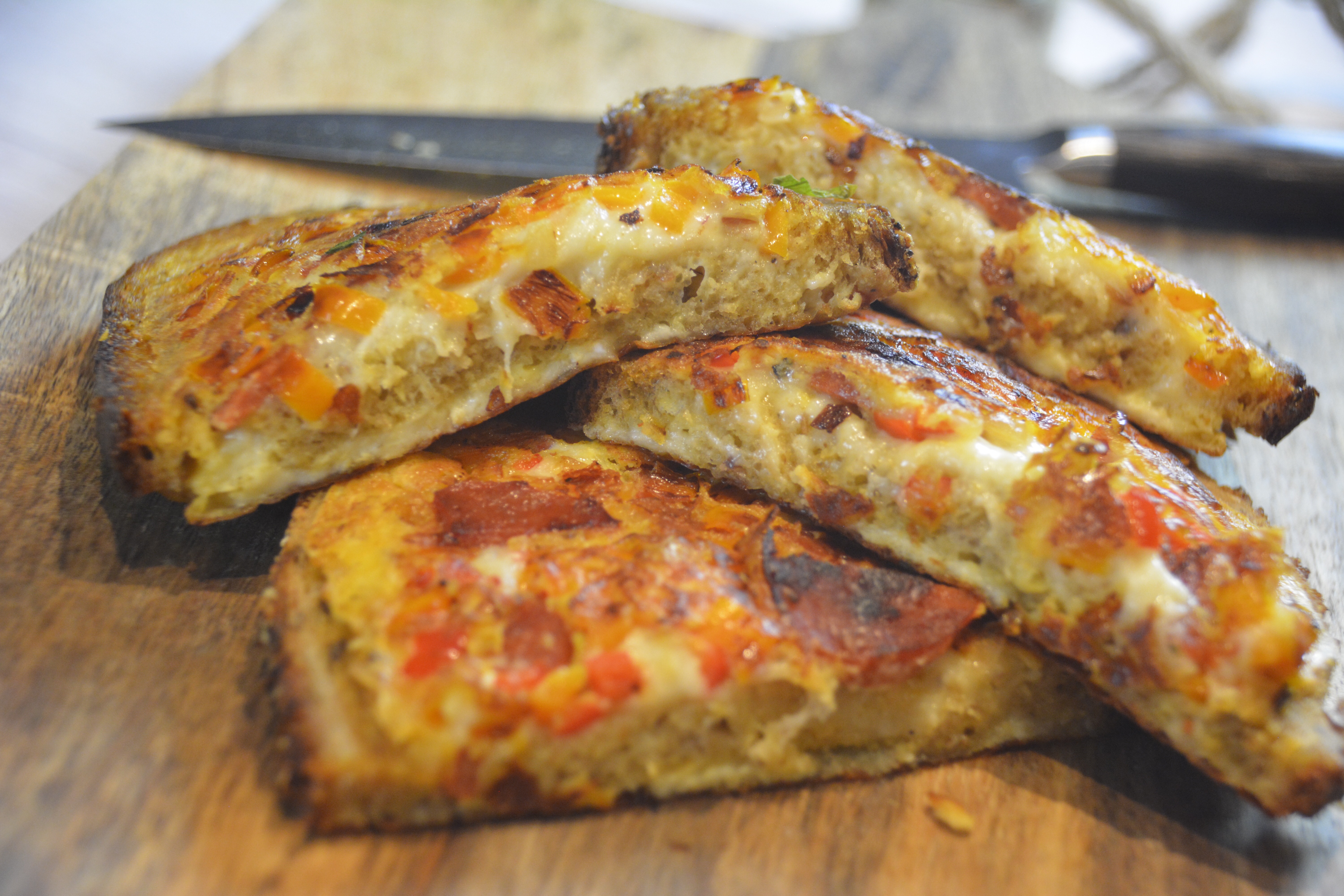 Heute zeige ich ein schnelles Rezept für ein krosses, knuspriges Sandwich. Zudem ist es eine gute Resteververtung, und schnell gemacht. Alles was ihr dazu braucht sind Zutaten die man sowieso fast immer im Haus hat. Brot,Käse,Eier , Wurst oder Schinken, Paprika oder Tomaten….was der Kühlschrank hergibt.
