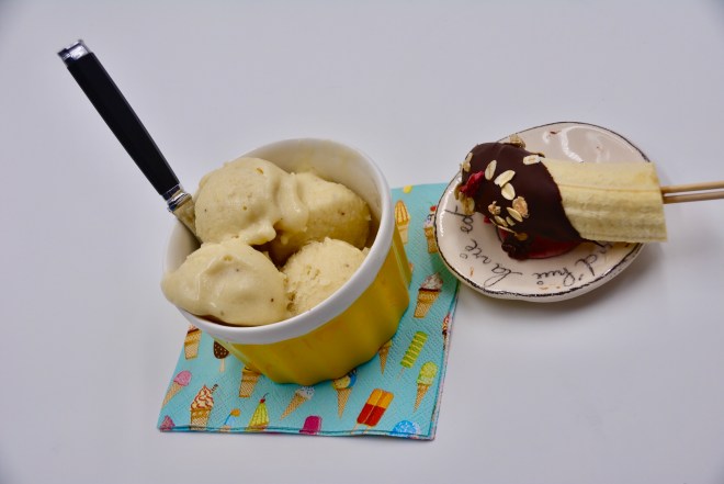 Heute habe ich ein blitzschnelles Rezept für euch. Perfekt für einen heissen Sommertag, oder einen lustigen Kindergeburtstag. Dieses Eis ist tatsächlich in 10 Minuten gemacht. Dann noch eine halbe Stunde in die Eismaschine und heraus kommt ein schönes cremiges Bananeneis, mit einem intensiven Bananengeschmack. Es ist ein altes Rezept das ich einmal von meiner Schwester bekommen habe, aber jedes Jahr im Sommer kommt es zum Vorschein und alle freuen sich auf ein leckeres Bananeis!!😋