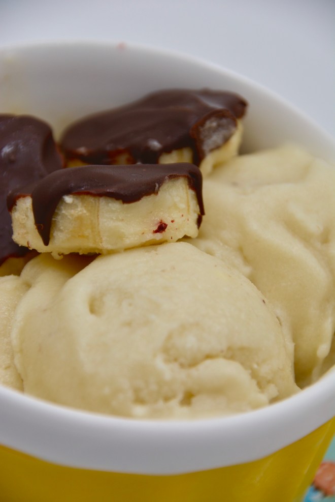 Danach die Masse in die Eismaschine geben und nach 25 Minuten habt ihr ein tolles cremiges Bananeneis.