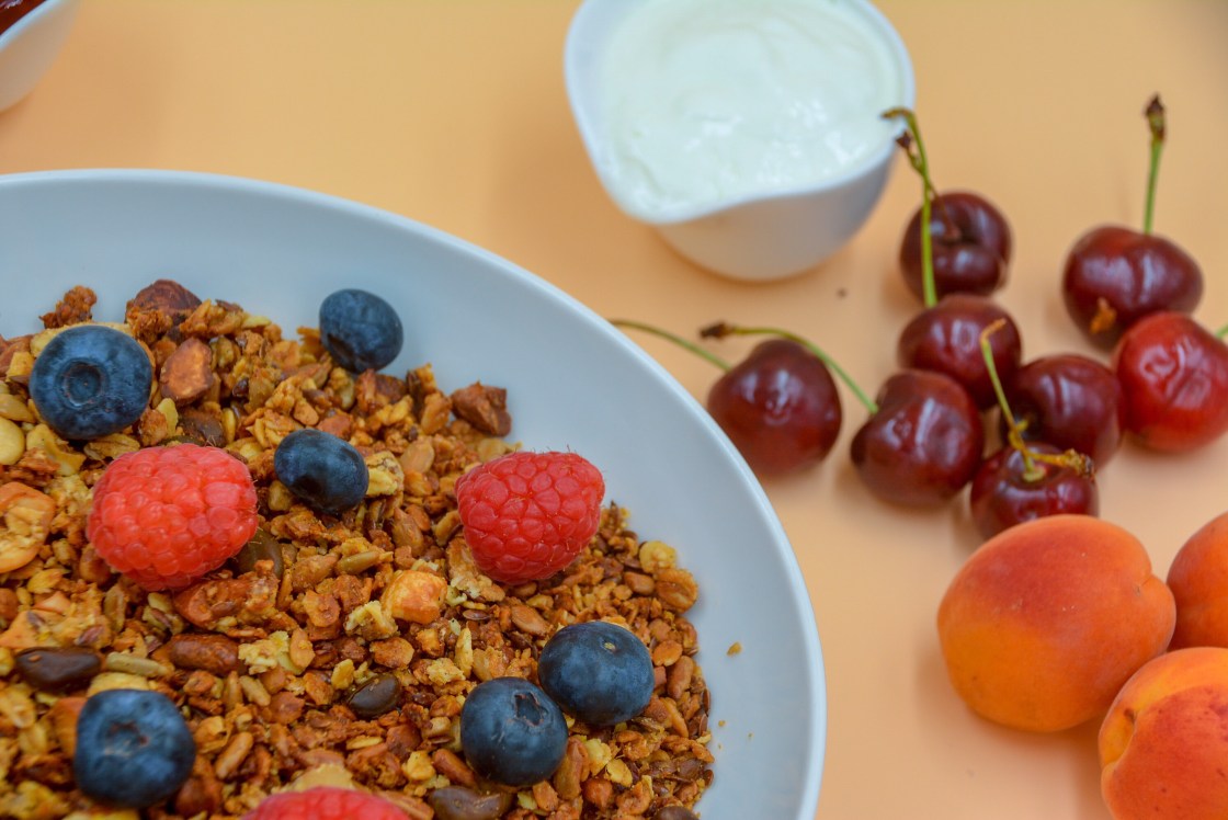 Ich versuche seit einiger Zeit, mir eine gesunde und ausgewogene Frühstücksroutine anzueignen. Das ist gar nicht so einfach für mich. Meistens esse ich gar nichts, bis Mittags. Und wenn ich etwas esse, ist es ein frisches Brötchen mit gekochtem Schinken oder Putenfleisch. Das ist ja nichts schlechtes, aber eine ganze Menge leere Kalorien die nicht sehr lange satt machen. Deshalb habe ich mich auf die Suche nach guten und gesunden Rezepten gemacht. Ich wurde fündig bei Tanja Grandits. Ich habe mir ihr Rezept angesehen und da ich mir sicher war, dass es gelingen würde, habe ich mir dieses Rezept als Grundlage genommen. Habe allerdings verschiedene Zutaten nach meinem Gusto verändert. Was ihr auch machen solltet, schliesslich soll es euer Lieblings Granola werden. Ich bereite es mir zu mit Mandelmilch oder Haselnussmilch und frischem oder getrocknetem Obst. Was ich gerade im Haus habe. Man kann es natürlich auch mit Joghurt oder Kuhmilch zubereiten. Ich muss sagen, es schmeckt wunderbar, man hat etwas zum Beissen und es sättigt sehr gut bis Mittags. Probiert es aus.