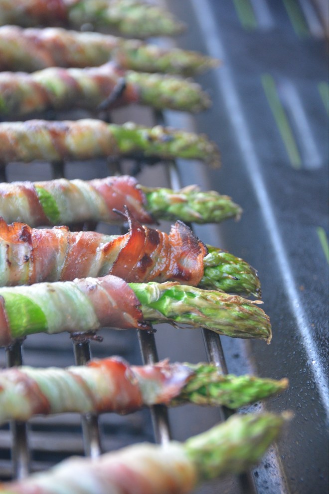 dsc_0199Grüner Spargel ist sehr vielseitig einsetzbar. Er passt sehr gut zu Risotto,  einem grünem Curry oder einem saftig gegrillten Steak. Ebenso passt er zu  einem knackigem Salat mit jungen grünen Spinatblätter, so wie zu gedämpftem Fisch oder kross gebratenen Jakobsmuscheln. Oder wie in meinem heutigen Rezept, mit geräuchertem Speck umwickelt und gegrillt. Wir essen ihn so gerne als Snack oder Amuse Bouche zu einem Glas Sekt oder Wein.