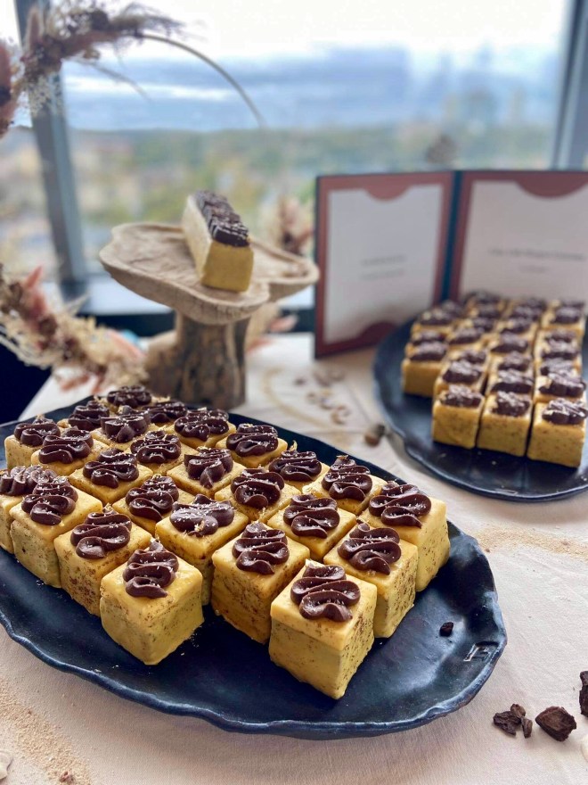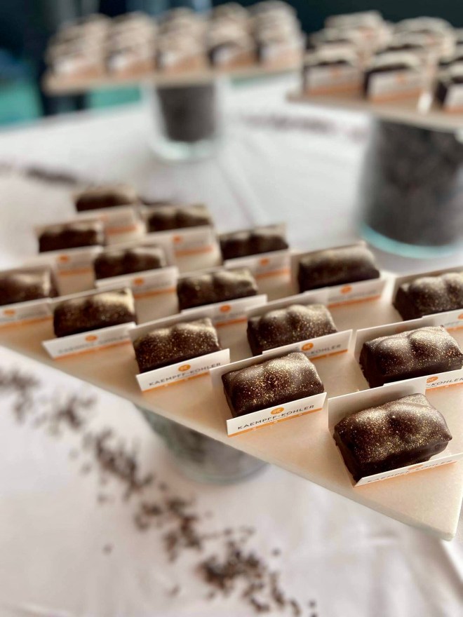 Alexandra Kahn von der Chocolaterie Genaveh hat uns mit einem Schokoladen Cake aus Pekannüssen, einer 72% schwarzen Schokolade aus Venezuela, Praliné, Fleur de Sel und einer sagenhaft guten Vanille aus Tahiti verzaubert.