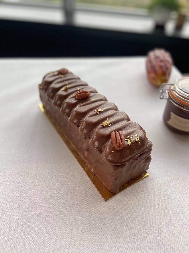 Jonathan Szymkowiak, der für das Delikatessen Geschäft Kaempff Kohler arbeitet, hat uns mit einem Schönen Finger Cake aus Karamell, Streusel, Nüssen und knusprigem Gianduja verwöhnt.